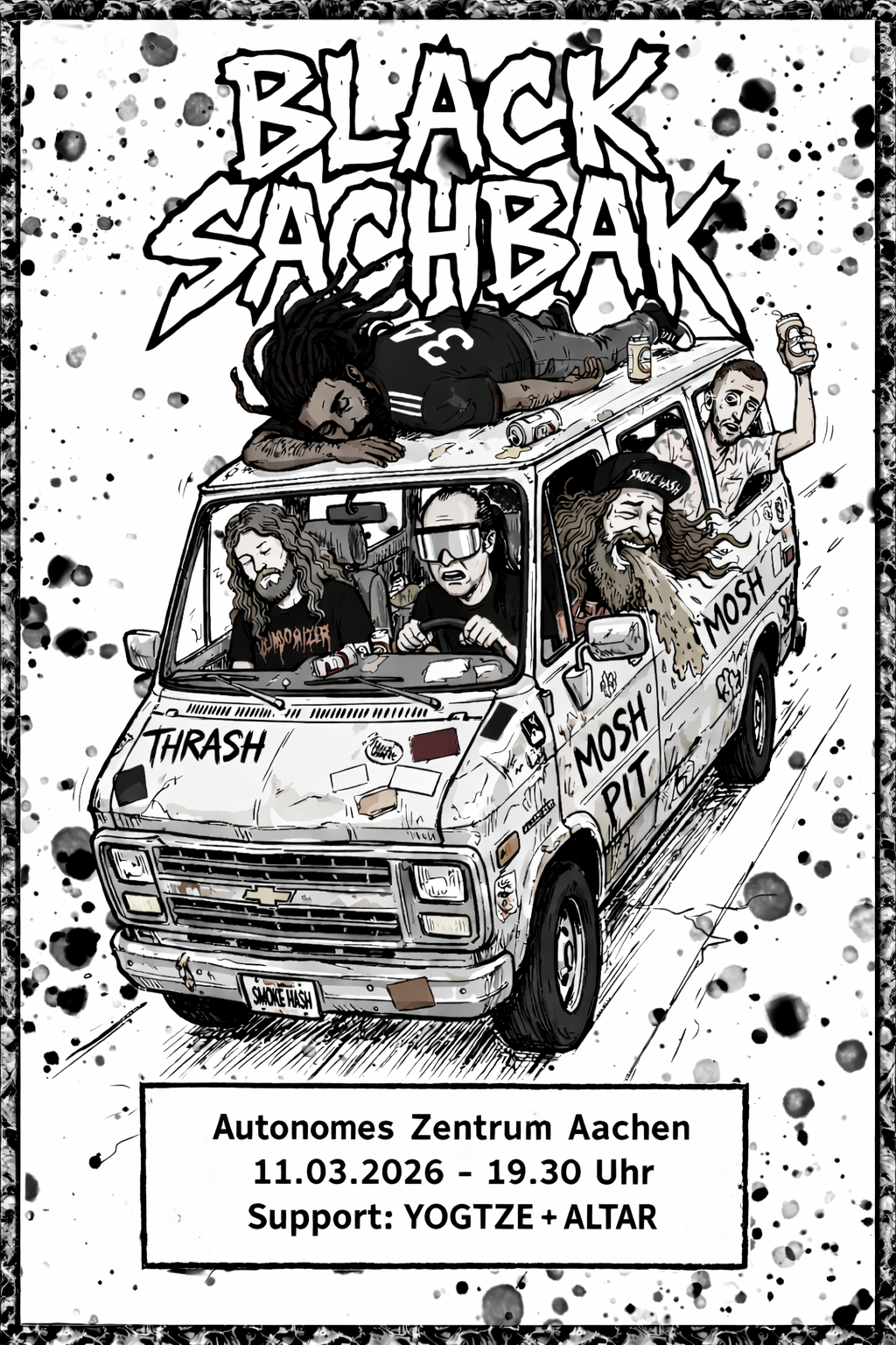 Gegründet in Tel Aviv, haben sich Black Sachbak in der internationalen Underground-Szene einen Ruf als kompromisslose Live-Macht erspielt. Musikalisch wurzelt die Band tief im Old-School-Thrash der 80er Jahre. Ihr Sound ist eine hochexplosive Mischung aus dem rasenden Tempo von frühen Slayer, der räudigen Attitüde von Venom und den technisch versierten Riffs der Bay-Area-Schule.