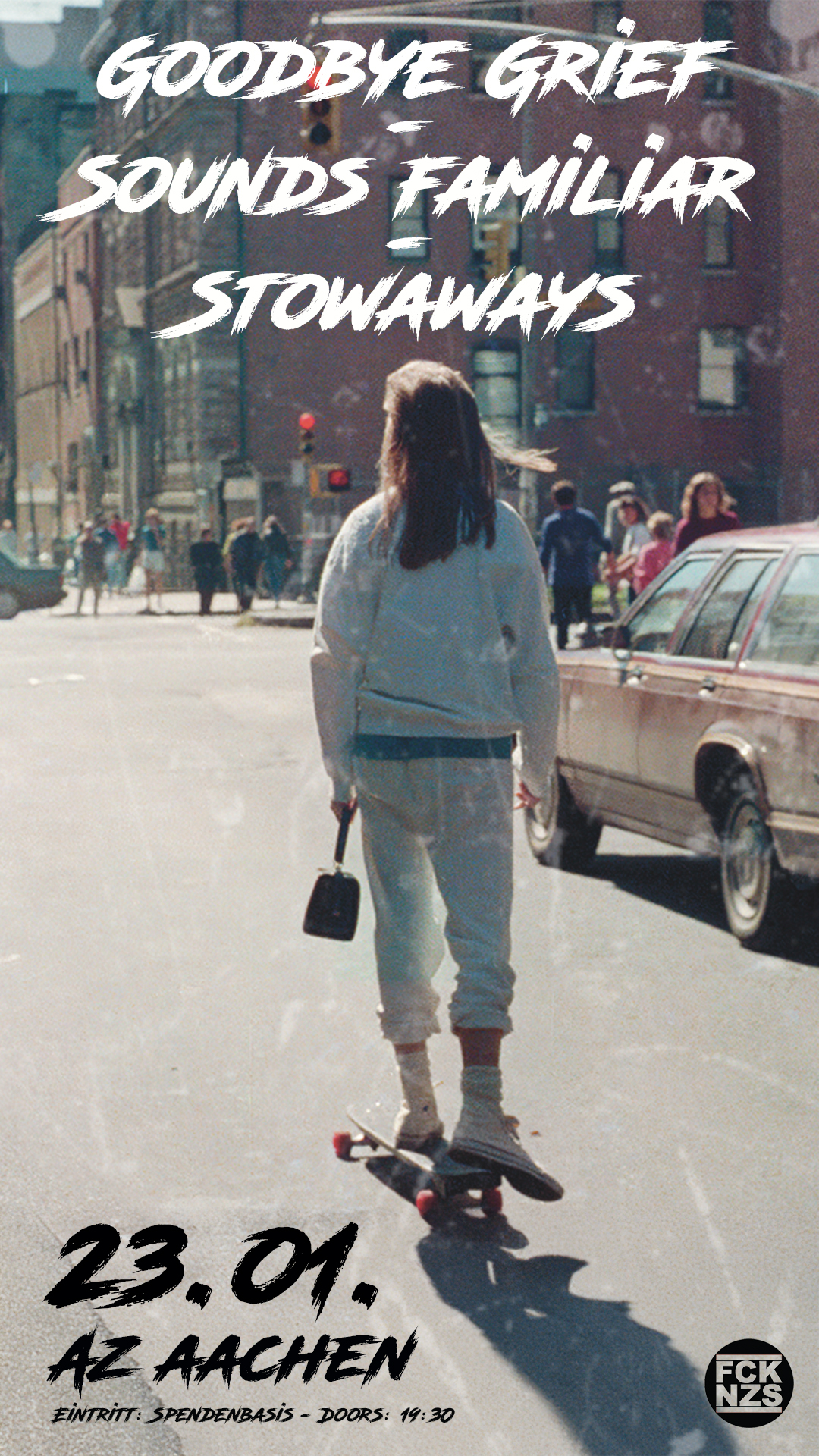 Goodbye Grief kombinieren die eigenen musikalischen Einflüsse der letzten 30 Jahre in ihrer individuellen Version von Skatepunk, Melodycore und Punkrock, gezeichnet durch einprägsame Melodien, persönliche, emotionale Texte und treibende Drum Patterns, zum Leben erweckt in leidenschaftlichen Songs, die im Ohr bleiben. Die abwechslungsreiche EP “Hopes” (2025), die von Andreas Vieten (u. a. Callejon) produziert wurde, ist stellvertretend für die kreative Bandbreite der Band. Für Goodbye Grief stehen Spaß an der Musik und eine gute Zeit gemeinsam mit dem Publikum immer an erster Stelle und sie freuen sich, nach langen Jahren endlich zurückzukehren ins AZ als frühere Gäste vor und auf der Bühne.