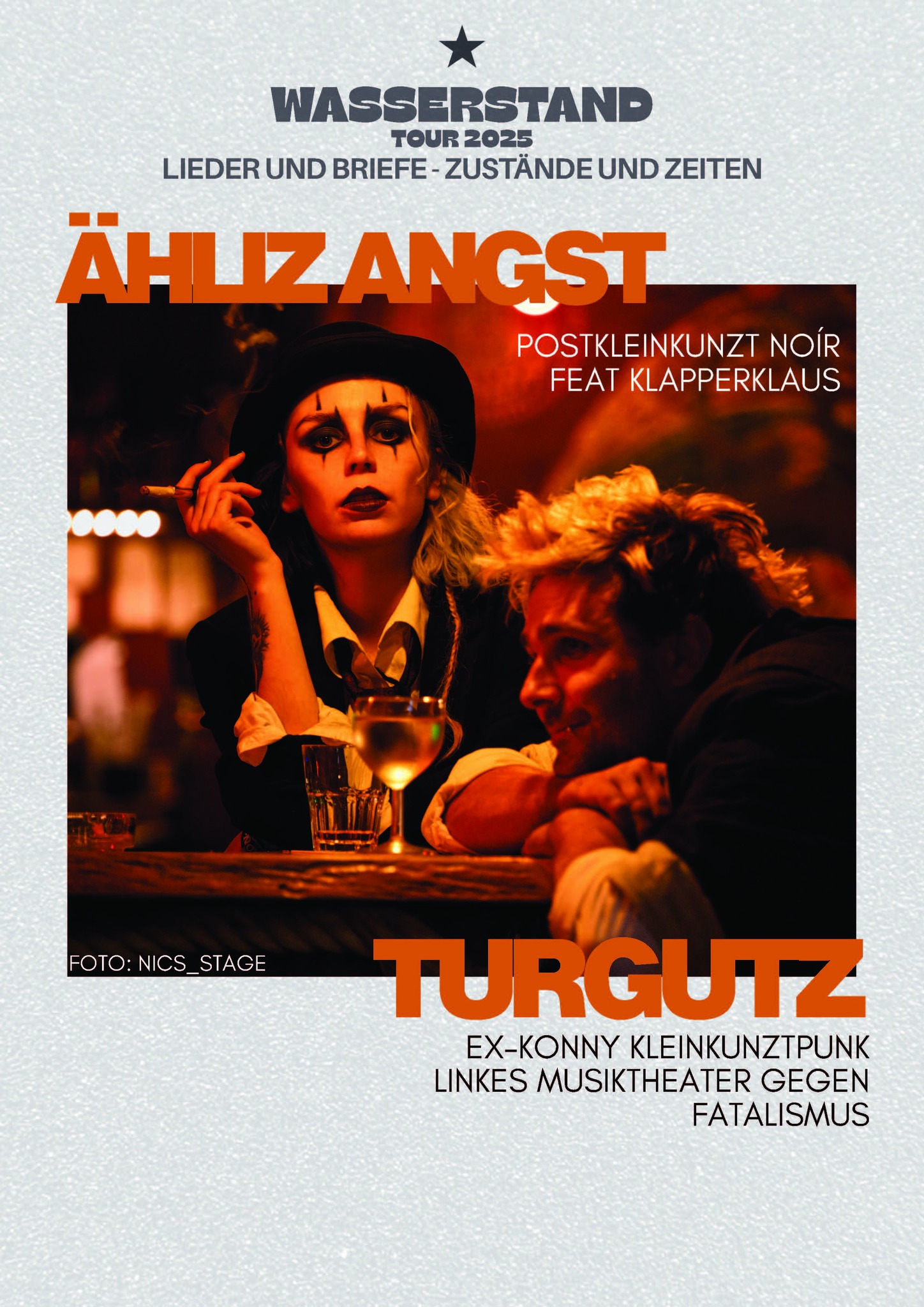 Die Zeiten sind, wie sie sind – und die Kämpfer:innen sind müde. Da kannste nix machen. Außer allen erzählen, die es nicht hören wollen, dass es so ist, und früher sich alles zumindest mal anders angefühlt hat, oder? Wie bleiben wir handlungsfähig, wenn Angst und Zynismus um sich greifen? Turgutz schaut zurück auf Lebensstationen und auf eine Bewegung um nach vorne schauen zu können. Ein musikalisch-szenisches Programm aus Liedern, Briefpassagen und Theaterelementen gegen das Aufgeben.